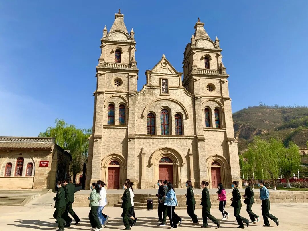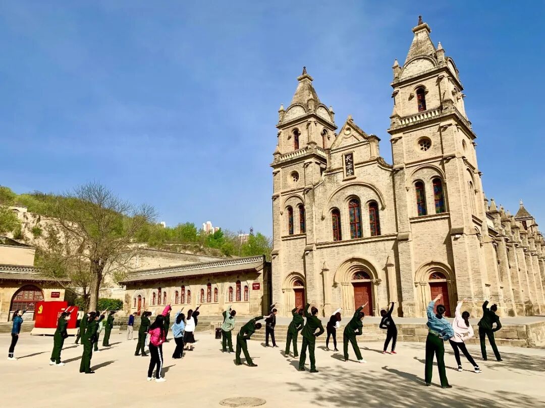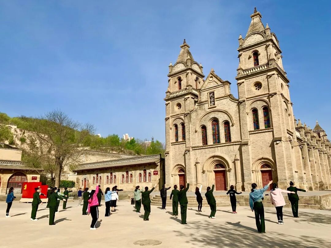 鲁艺人迈着矫健的步伐、唱着嘹亮的歌声、喊着铿锵有力的口号。让这座哥特式庄严神圣教堂显得更加朝气蓬勃、富有生气。