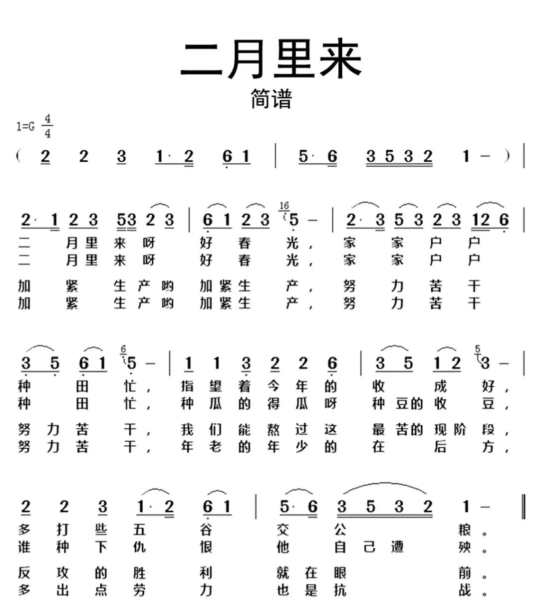 《二月里来》1939年3月作于延安,是冼星海所作《生产大合唱》中的一首歌曲,内容描写了后方人民努力生产,支援抗日战争的情景。作品形式类似大型歌舞话报剧。全曲共分两幕,第一幕《生产与抗战》,第二幕《农村小景》。音乐是在民歌和民间歌舞音乐的基础上发展而成的。并增加了一些对农村景物的描绘,风格清新、明朗。其中《二月里来》、《酸枣刺》等作品经常单独演唱,流传甚广。整部作品是对生产和生活场景的朴实记叙和热情歌颂。