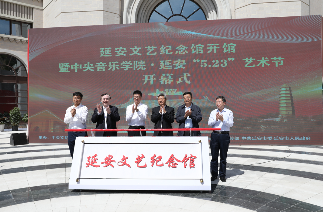 中共陕西省委常委、市委书记徐新荣,中共陕西省委常委、省委宣传部部长牛一兵,陕西省决策咨询委员会副主任白阿莹,中央音乐学院院长俞峰,陕西省文旅厅厅长任宗哲,陕西省文物局局长罗文利共同为延安文艺纪念馆揭牌