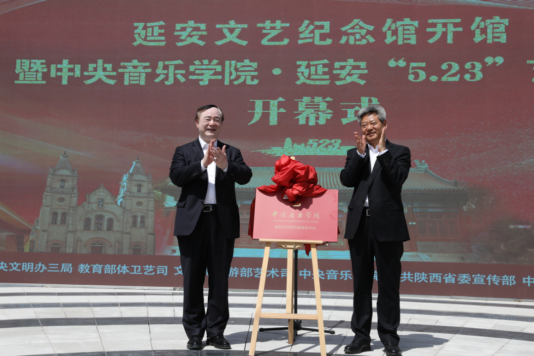中央音乐学院院长俞峰,中共陕西省委常委、市委书记徐新荣共同为中央音乐学院新时代文明实践延安中心揭牌