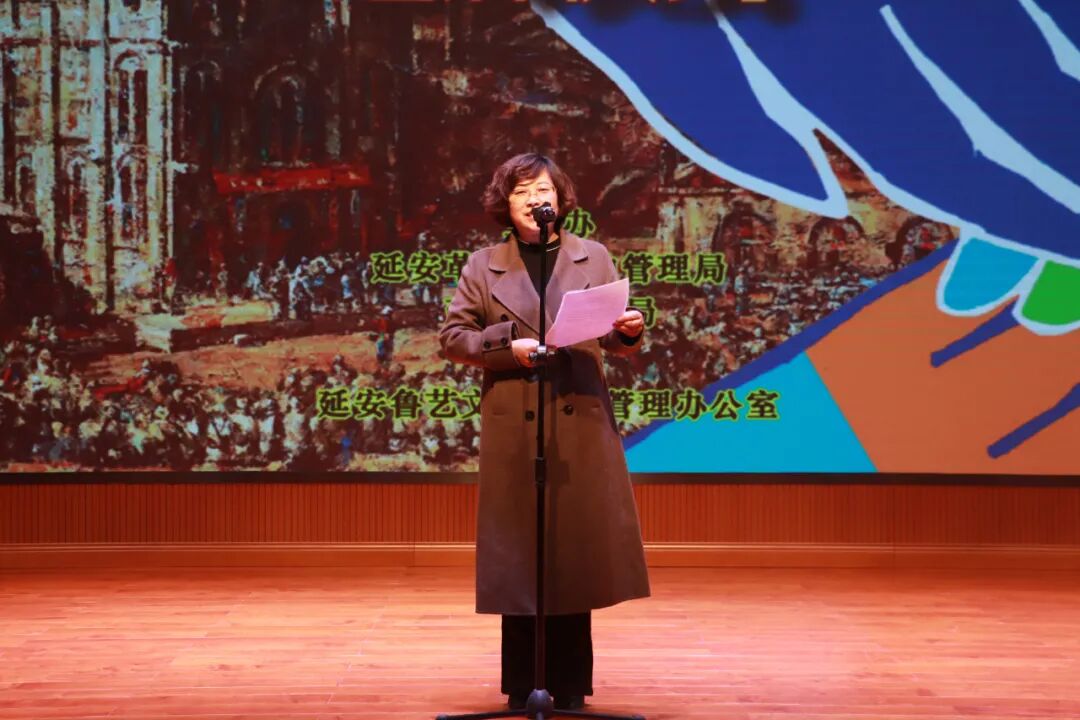 园区刘妮主任做了表态发言:全市中小学生美育基地落地鲁艺,我们深感使命光荣,责任重大。延安时期,老一辈无产阶级革命家、广大文艺家发展马克思主义美育理论,将中华美学精神,植根于救亡图存的抗日战争和解放战争的伟大历史进程中,发展抗战文艺、人民文艺,为革命的胜利产生了强大的助力。我们将以本次揭牌活动为契机,进一步挖掘鲁艺蕴含的文化内涵,积极与校园教育相结合,与新时代的育人思想相结合,全面开展党史、国史、文艺史的普及教育,解读好每一部优秀文艺作品蕴含的中华美育精神。不断开发和举办体现爱国主义教育、中华美育精神的音乐、美术、戏剧等活动,提高学生对美的认识。强化鲁艺以美育人、以文化育人的文化凝聚力。密切联合校园开展教育,为新时代立德树人工程,为祖国培养德智体全面发展优秀人才而努力。