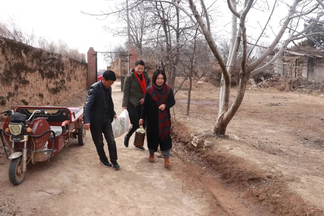2月8日上午,延安鲁艺园区主任刘妮与下派驻村第一书记高延胜,在珊瑚村村干部的陪同下,看望慰问珊瑚村贫困户和村里80岁以上的老人,给他们送去米、面、油、电饭煲等慰问品和节日祝福。
